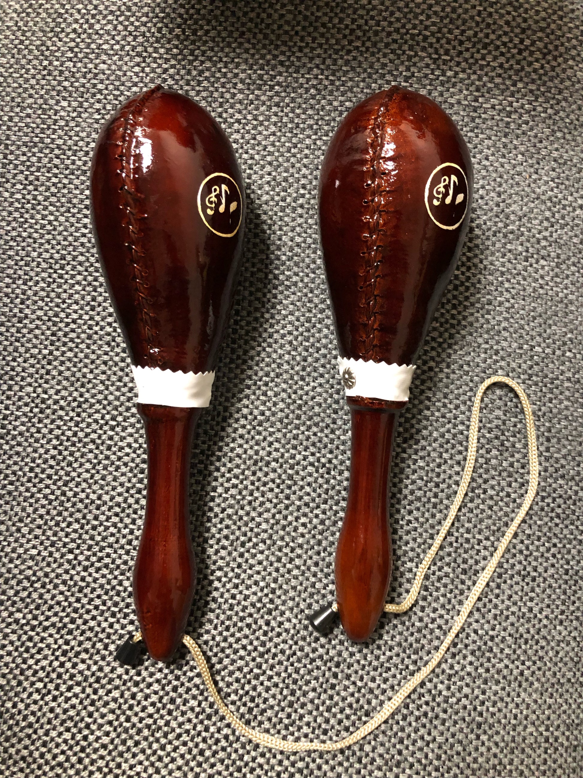 Sturdy and wonderful sounding maracas crafted with Venezuelan cowhide. Check out what professional maracas sound like.