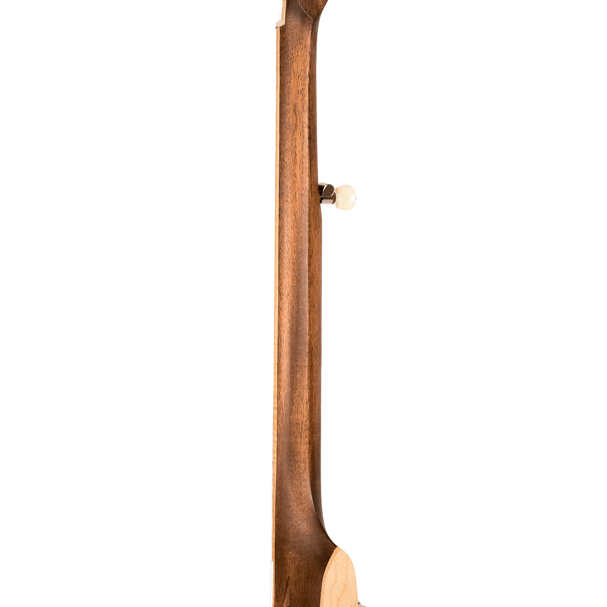 One major departure from modern practice stands out: the truss rod adjustment is on the peghead! While some players might prefer the look of a smooth headstock, a truss rod that adjusts from a socket in the face of the neck heel that faces the pot is impractical AND inconvenient. If one must remove the banjo’s neck in order to adjust the truss rod for seasonal changes in neck relief, how does one know how much of an adjustment to make? The only way to check if the adjustment is too much or too little is to remove the neck again, adjust and re-install it and hope it’s right. If it ISN’T, the neck comes off AGAIN to re-do it. Placing the adjuster on the peghead allows easy adjustment with the strings tuned to pitch, assuring accuracy.