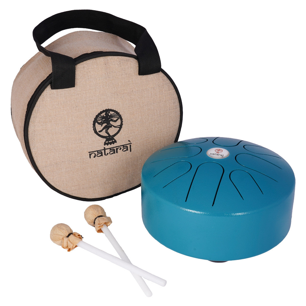 このドラムはCメジャー・ペンタトニック・スケールにチューニングされており、テクスチャード・ウォーター・ブルー仕上げです。タンギングドラムには、マレット2本とジュート(環境に優しい素材)製のギグバッグが付属しています。